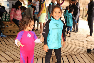 levamos as mesmas crianças para surfar na praia de La Boca, aonde existem